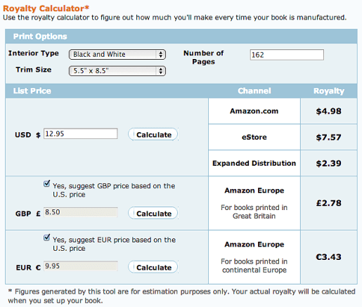 Amazon Self Publishing Royalties Structure Calculator